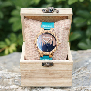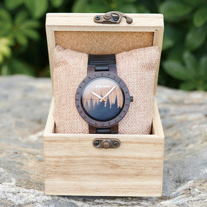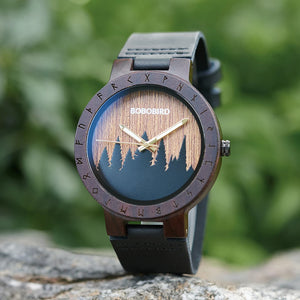 Inspired by the beauty of the great outdoors, this wooden watch embodies Woodland Forest Elegance, bringing together rugged charm and modern minimalism. Featuring a forest silhouette dial and engraved runic bezel, it’s perfect for adventurers and nature lovers. A lightweight, eco-conscious timepiece that blends function with storytelling.